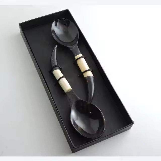 Natural Buffalo Horn Serving Spoon Durable Handmade Spoon for Cooking Salad and Tableware Eco-Friendly Polished Horn