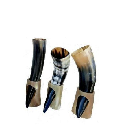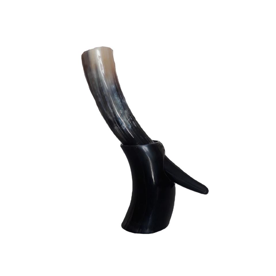Natural Buffalo Horn Viking Drinking Horn with Polished Leather Holder and Metal Stand Eco-Friendly Religious Animal Design