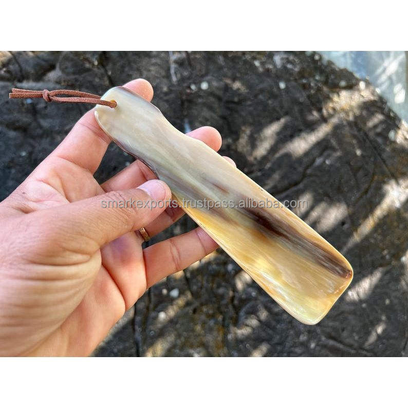 Natural Bull Horn Carved Feng Shui Shoe Horn Handmade Compact Pocket Size Lightweight Smooth Finish Comfortable Shoe Accessory
