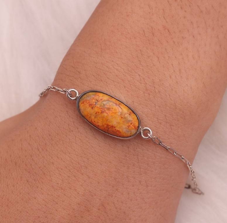 Product Name:Natural Bumble Bee Jasper Gemstone silver bracelet