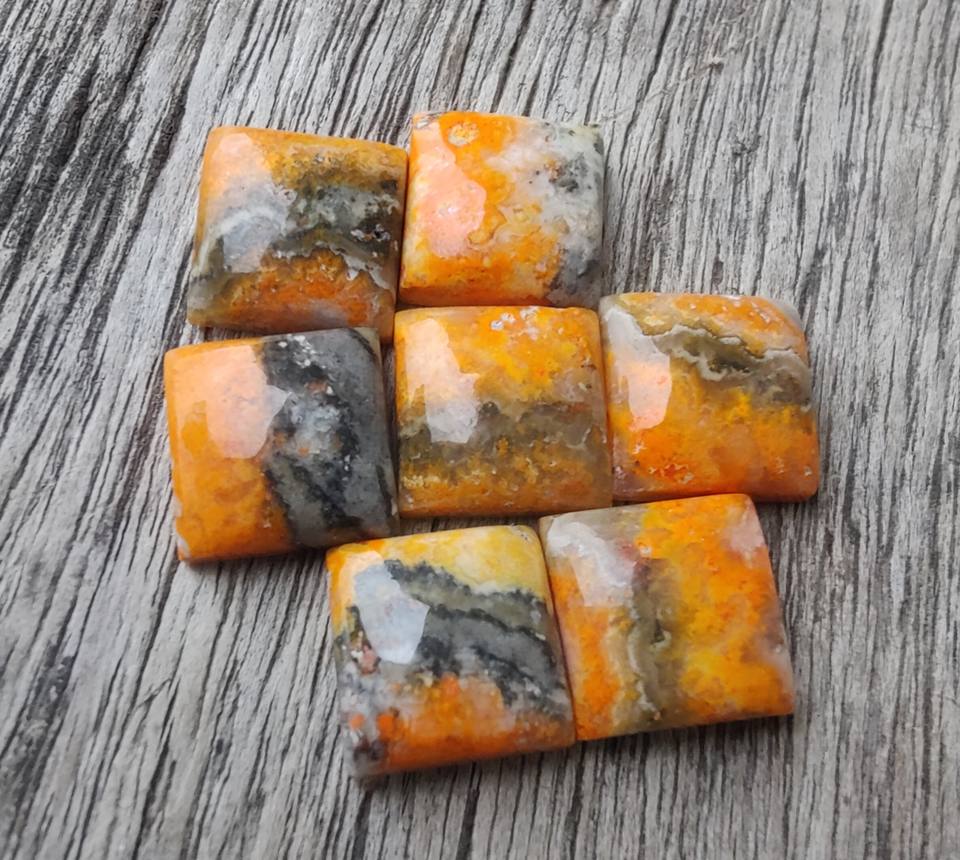 Natural Bumble Bee Jasper Cabochon Square Asscher Cut Gemstone with IGI Certificate Available in All Sizes