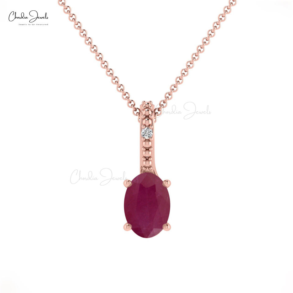 Natural Burma Ruby Pendant in 14k Solid Gold Hidden Bail Locked Diamond Pendant 6x4mm Oval Cut Solitaire Pendant From Wholesaler