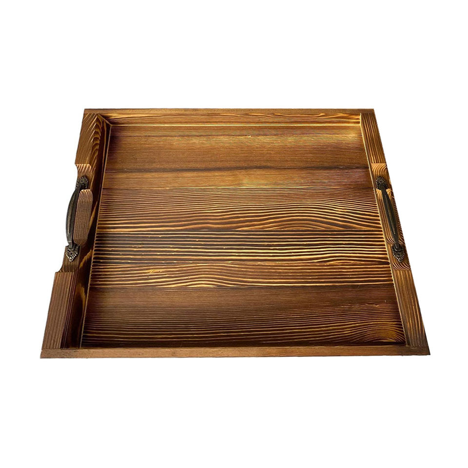 Product Name:Wooden Serving Tray With Metal Handles