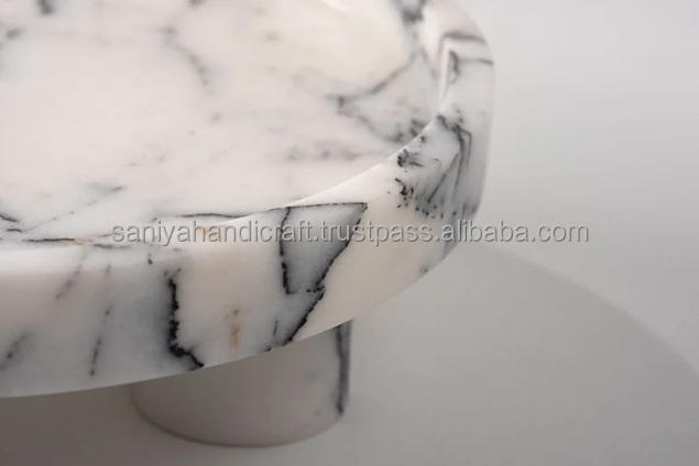 Natural Calacatta Viola Marble 12\" Pedestal Serving Cake Stand Large Footed Centerpiece Tray Stone Style Polished Unique Gifts