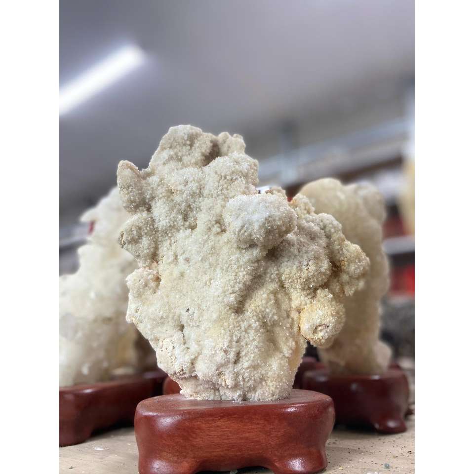 Natural Calcite Crystal Display Stone with Wooden Stand for Home Decoration and Collection