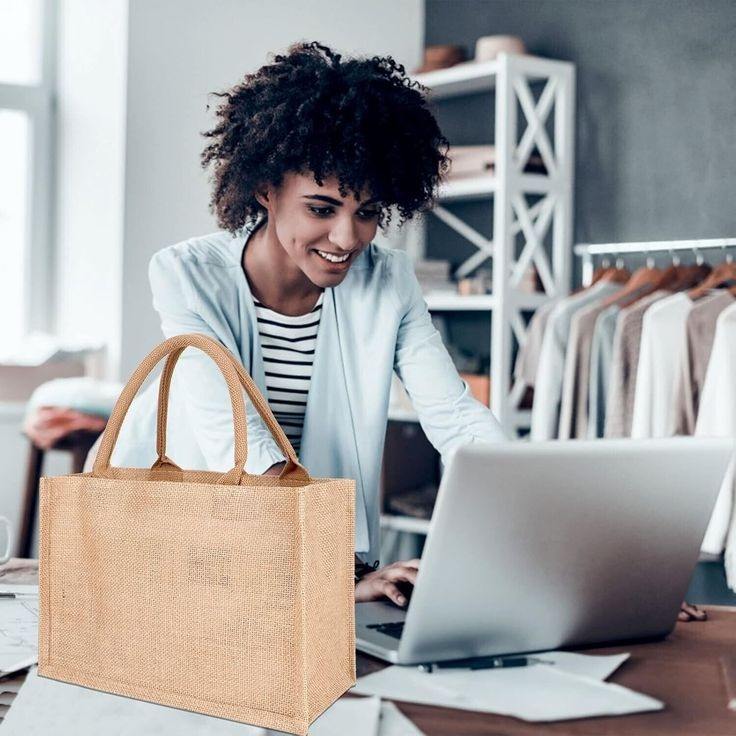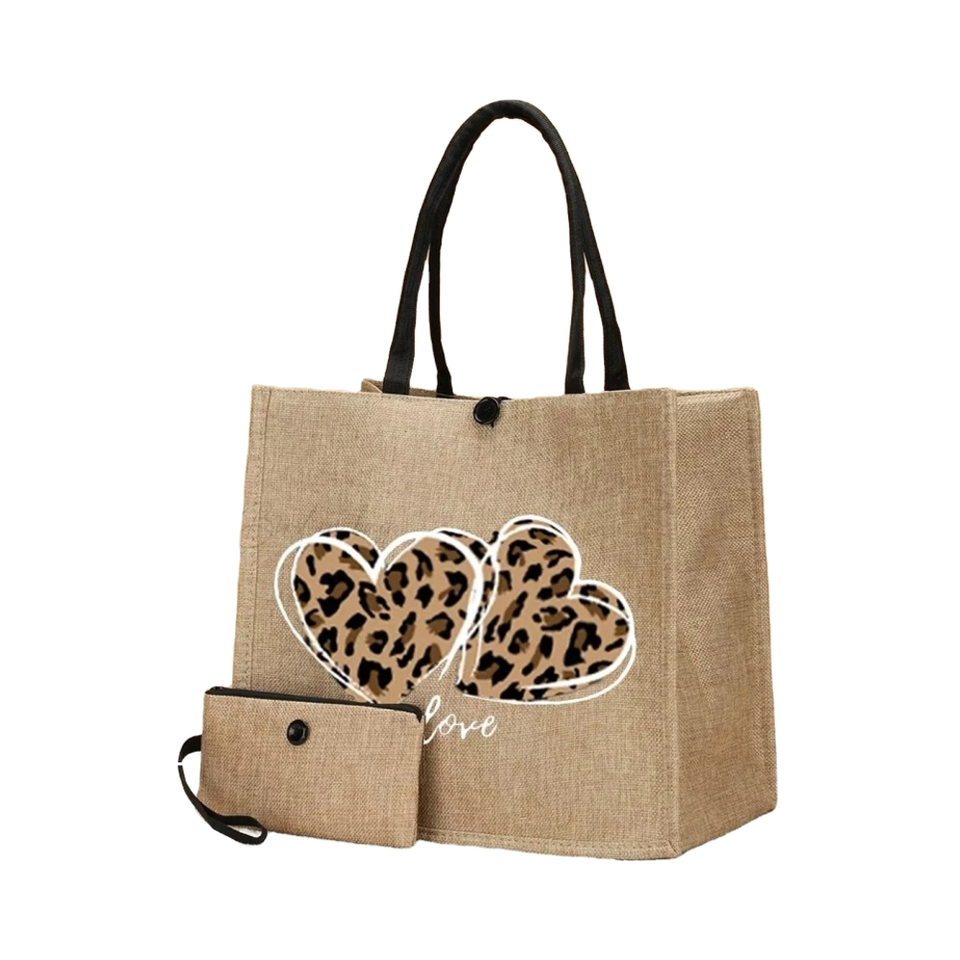 Natural Canvas Heart Design Jute Bags With Black Handles Perfect For Grocery Shopping Use Elegant Durable Sacks Top Quality