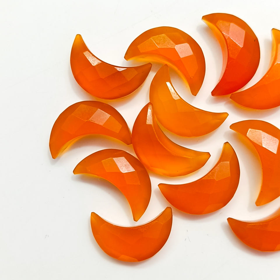 Carnelian Faceted Moon Carved Beads