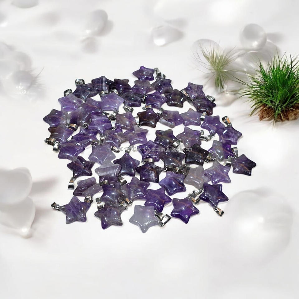 Natural Carved Crystal Healing Gemstone Jewelry Pendants Amethyst Bulk Star Stone Pendant Necklace Charms Souvenir Christmas
