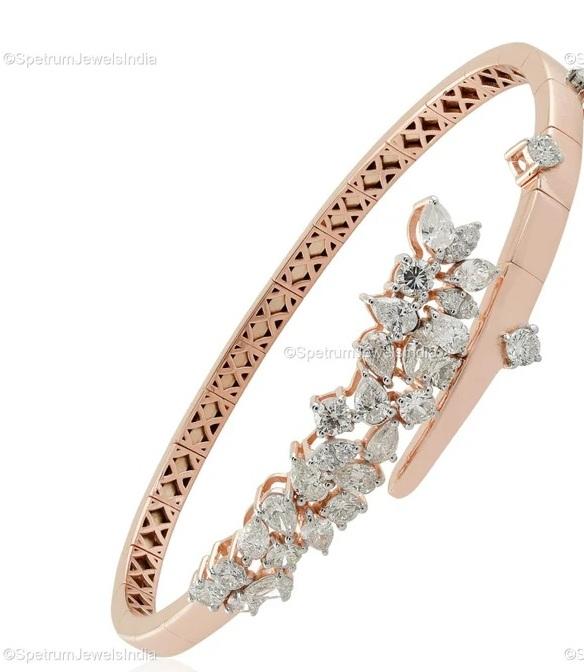 Natural Certified Diamond 18k Rose Gold Bracelet| Natural Brilliant Cut Diamond Bangle| Handmade Dainty Bangle| Pave Diamond