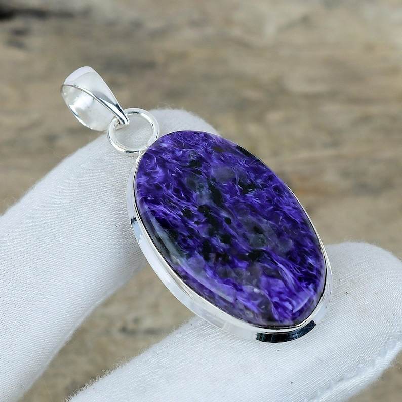 Natural Charoite Pendant Handmade Gemstone 925 Silver