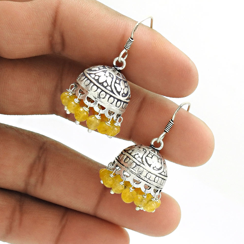 Natural Citrine Gemstone Artisan Look Jhumka Earring for Woman Girl 925 Sterling Silver Handmade Jewelry Wholesale Factory Price