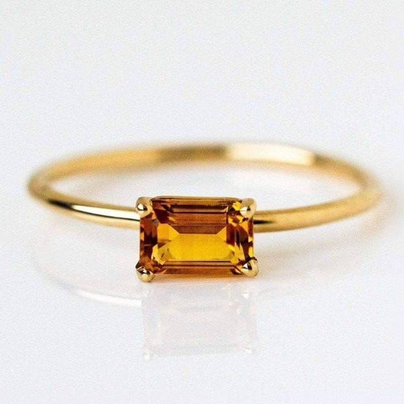 Natural Citrine Ring Sterling Silver Baguette Dainty Stacking 925 Silver 14k Gold Plated Birthstone Ring