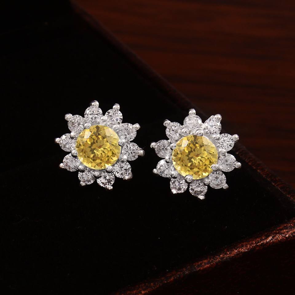 Natural Citrine Stud Earrings Stunning 925 Sterling Silver CZ Stone Birthstone Earrings Minimalist Jewelry Birthday