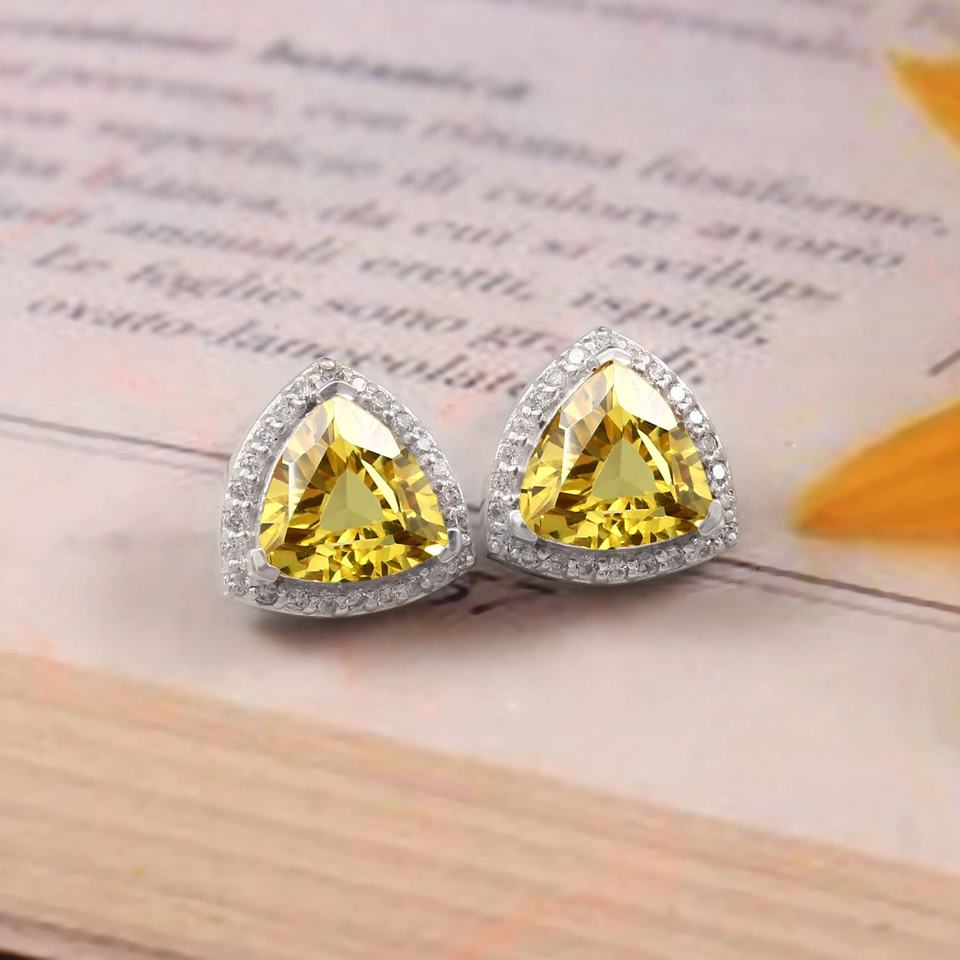 Natural Citrine Trillion Cut Earrings 925 Sterling Silver Studs CZ Tiny Round Stone Bright Gemstone Jewelry Gift for Women
