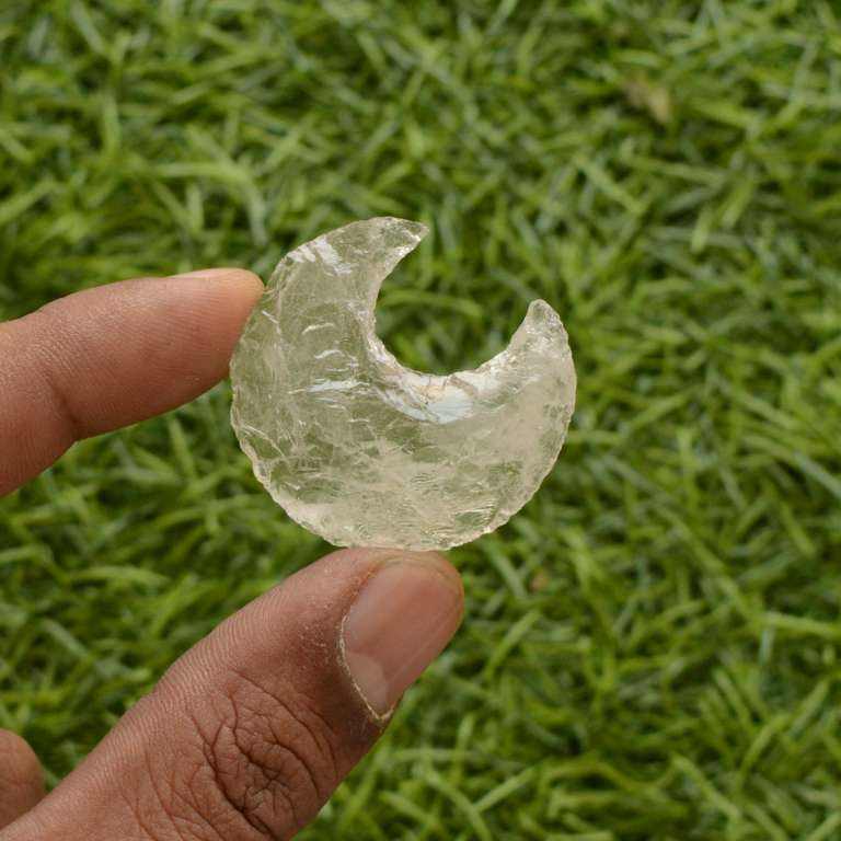 Natural Clear Quartz Crescent Moon Carving Crystal Healing Metaphysical Gemstone Jewelry Making Children's Hinduism Luxury