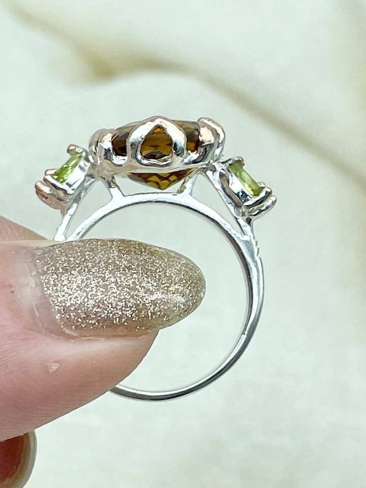 Product name:Cognac Quartz Peridot 925 Sterling Silver Ring
