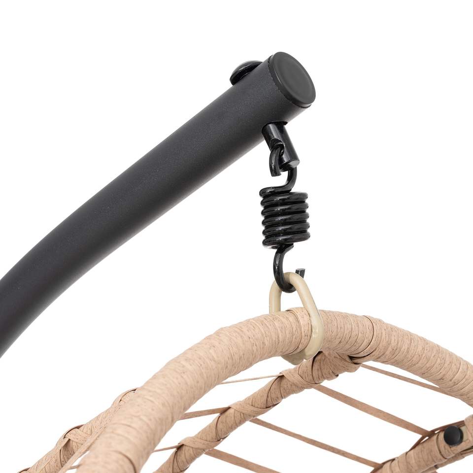 Natural Color Outdoor/Indoor Swing Egg Chair with Beige Cushion Wicker Veneer Model D0100HPVBY7