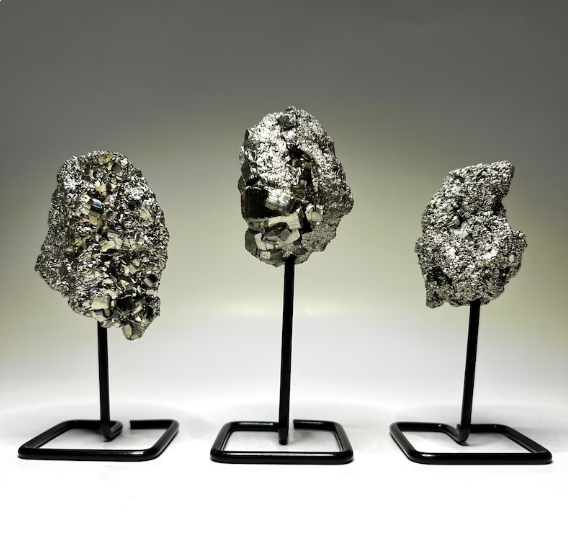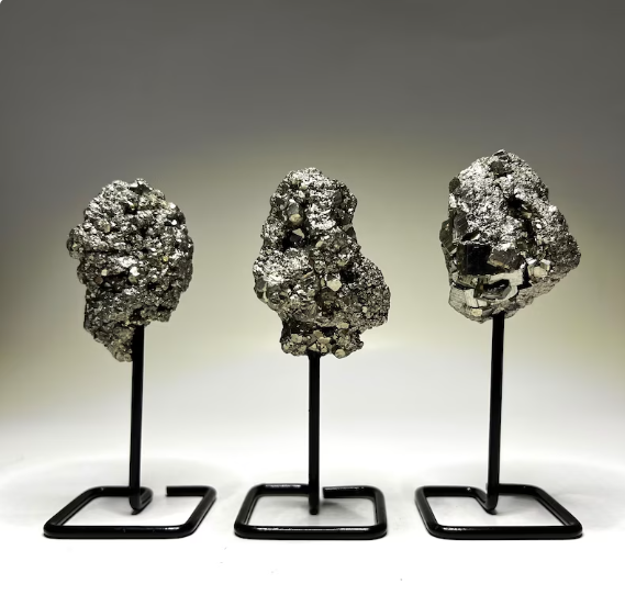 Raw Pyrite Stone on Metal Stand