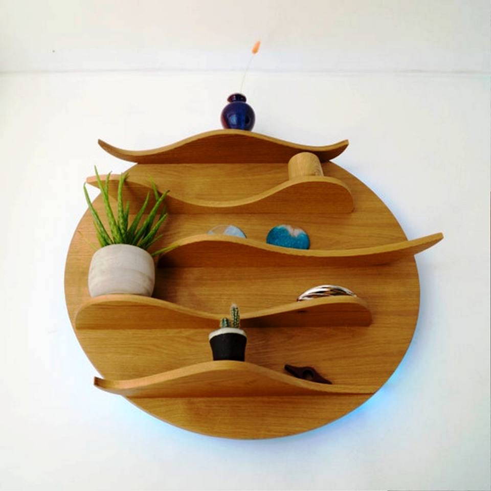 Natural Colour with Handmade Carving Wooden Wall Mount Storage Rack for Holding Flower Pots Beautiful Wall Art-Buy Now!