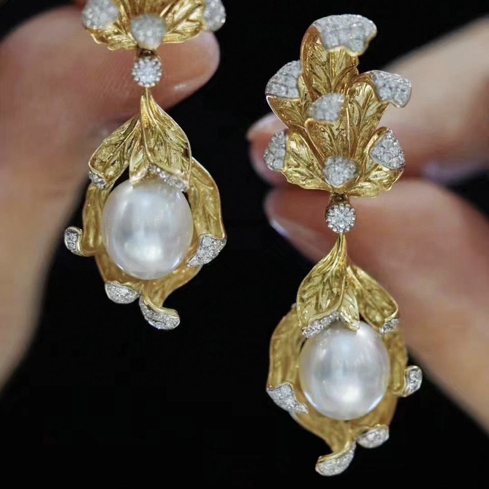 Natural Concentrated Gold Bead Dangle Earrings 10-11mm Nearly Round Almost Flawless 925 Silver Inlaid with Natural Pearls