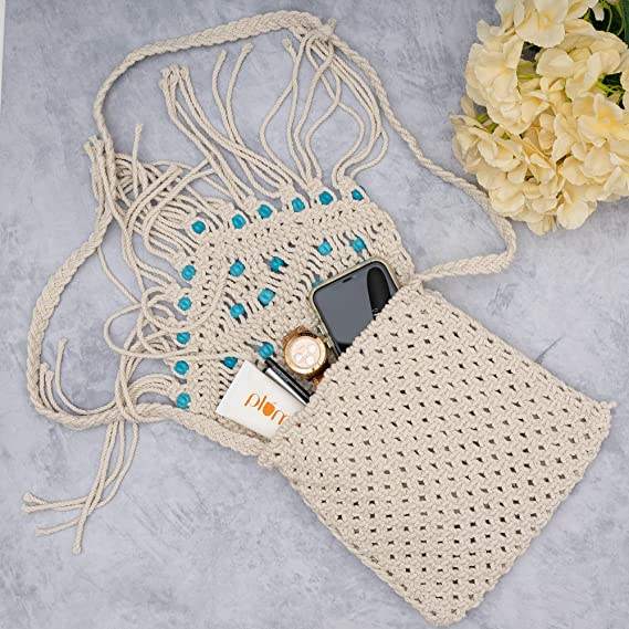 Handmade Bohemian Macrame Sling Bag Natural Cotton Fabric Full Size Beige Stylish for Women Summer Season Wholesale Price