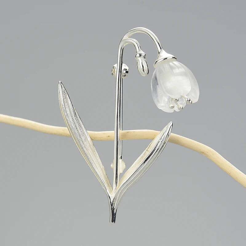 Natural Crystal Lily of the Valley Flower Brooches