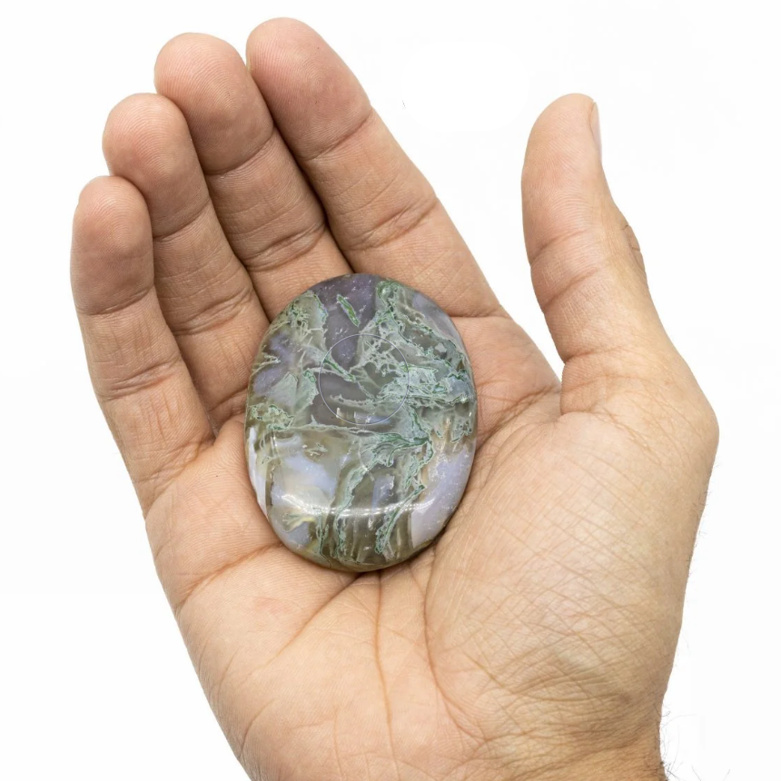 Natural Crystal Moss Agate Palm Stone Carved Quartz Agate Crystal Gemstone for Healing Unique Crafted Pebble for Car Home Decor