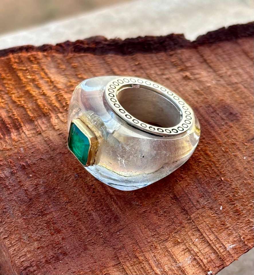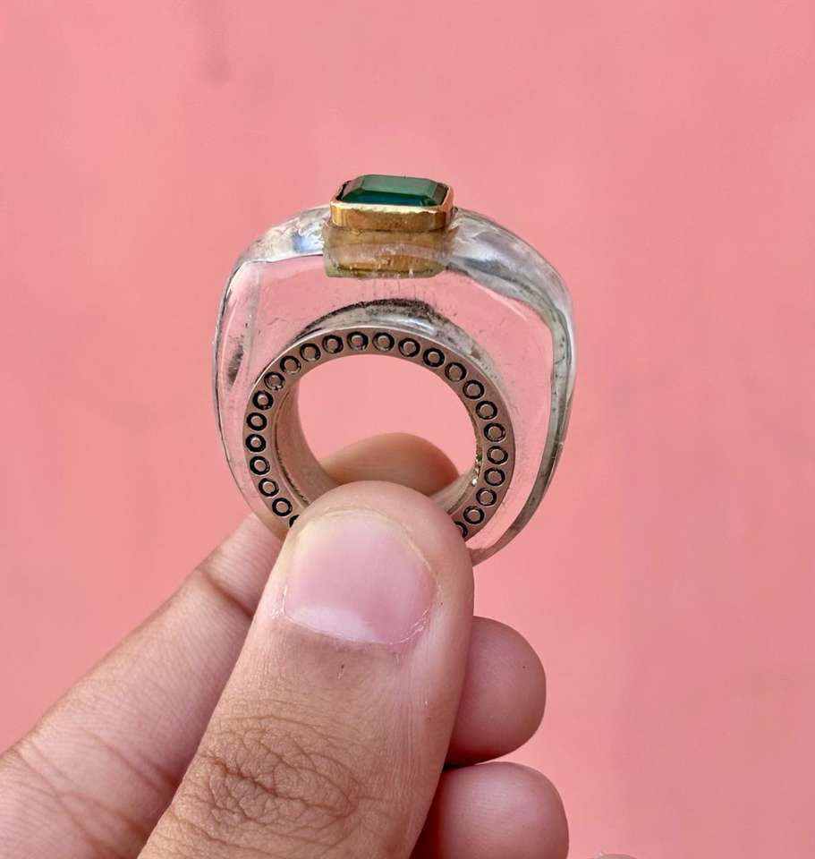 Natural Crystal Quartz 925 Sterling Silver Ring With Emerald Crystal In Centre Gemstone Statement Ring Special Gift For Her
