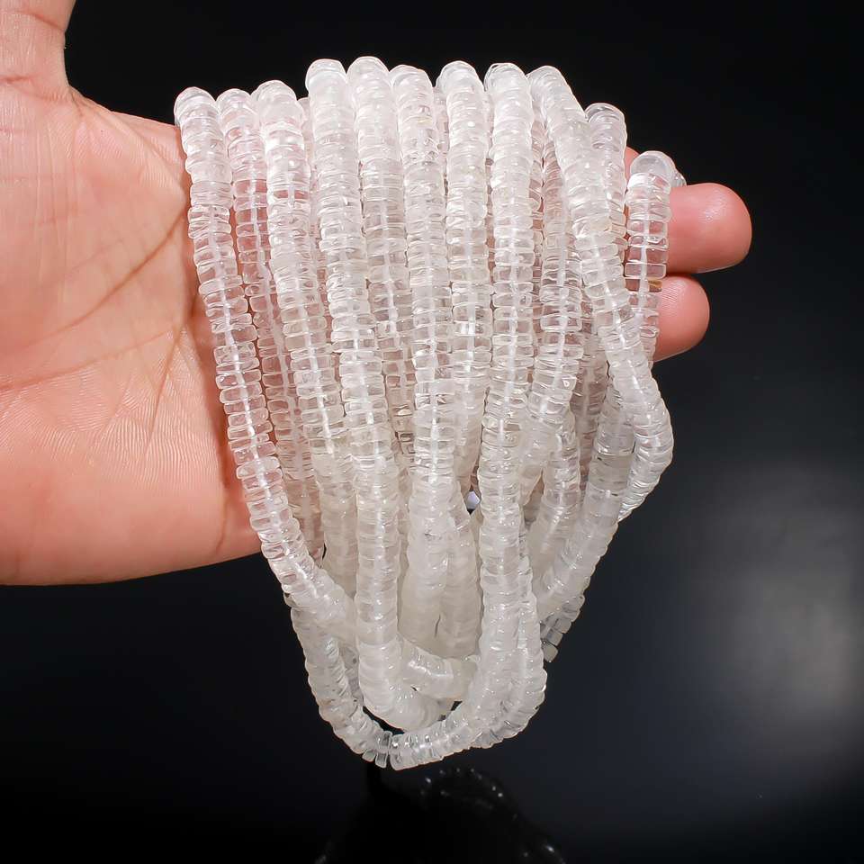 Natural Crystal Quartz Flat Gemstone Beads 16\" 6mm-8mm Heishi Disc Tyre Shape Loose Nature Crystal Necklace Bracelet