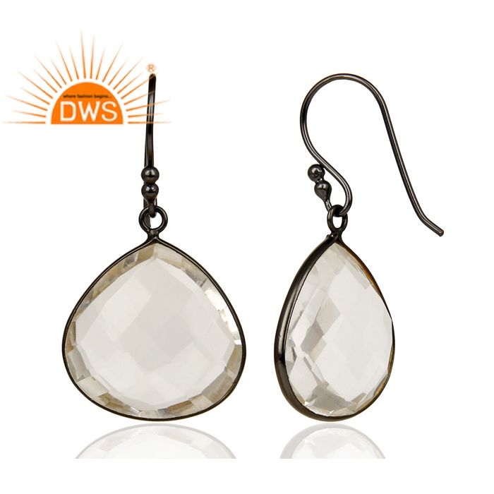 Natural Crystal Quartz Gemstone Drop Earrings Jewelry Wholesale Rhodium Plated 925 Silver Earrings Jewelry Supplier
