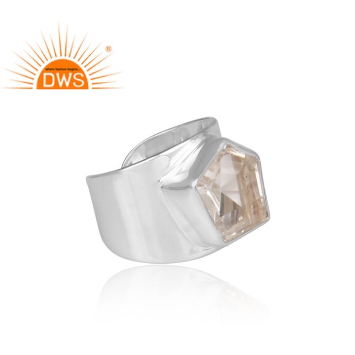 Natural Crystal Quartz Gemstone Stackable Ring Fine 925 Silver Classic Statement Ring Jewelry Manufacturer
