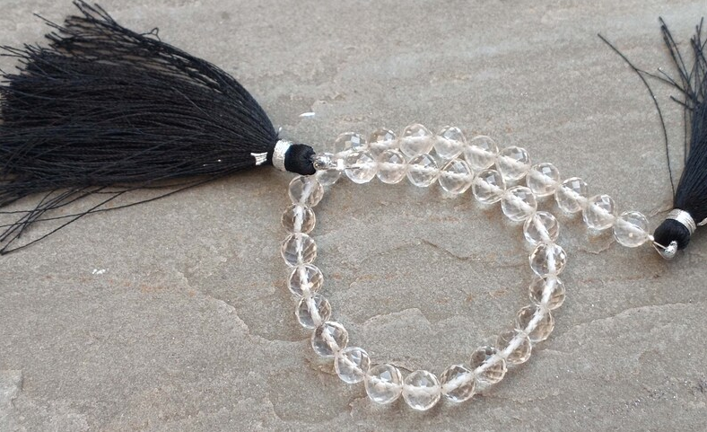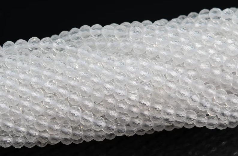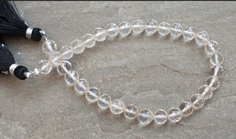 Natural Crystal Quartz Round Ball Shape Faceted Beads for Jewelry Anklet Women 15inch Rondelles Strands Birthstone Bracelet