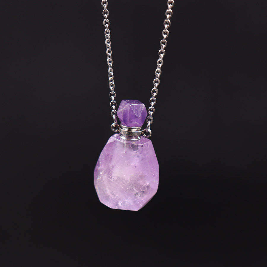 Natural Crystal Stone Amethyst Perfume Bottle Aroma Essential Oil Diffuser Perfume Bottle Crystal Tumble Stones Pendant