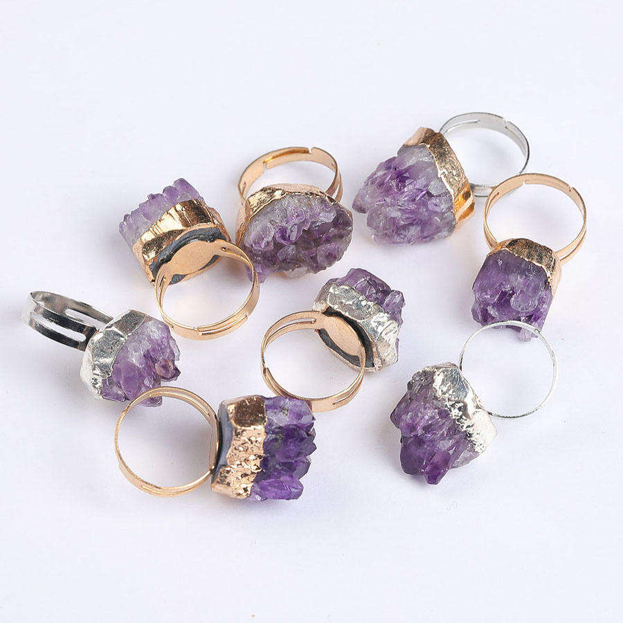 Natural Crystal Stone Ring Adjustable Natural Gemstone Amethyst Druzy Ring Crystal Rings Natural Stone