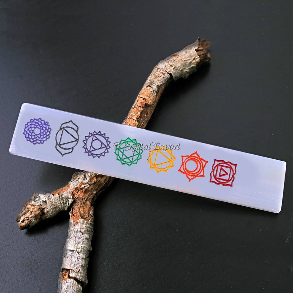 Natural Crystal Stone craft Semi-Precious Stone Crafts Selenite Rainbow Chakra Sanskrit Engraved Tumbled Set