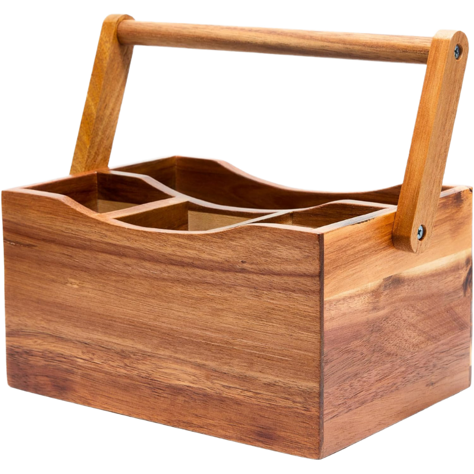 Natural Custom Folding Multifunction Spoon Forks Organizer Tray Bamboo Wooden Kitchen Cutlery Basket Holder Handle Restaurant