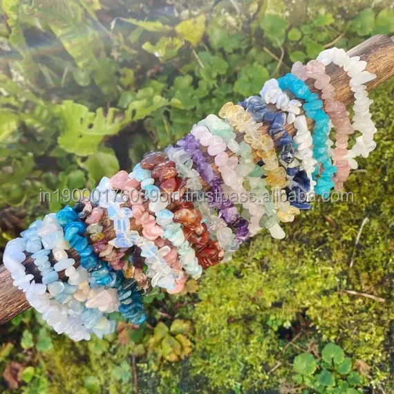 Natural Dalmatian Jasper Chip Stone Bracelet Wholesale Healing Crystals Gemstone Dalmatian Jasper Chips Crystals Bracelet