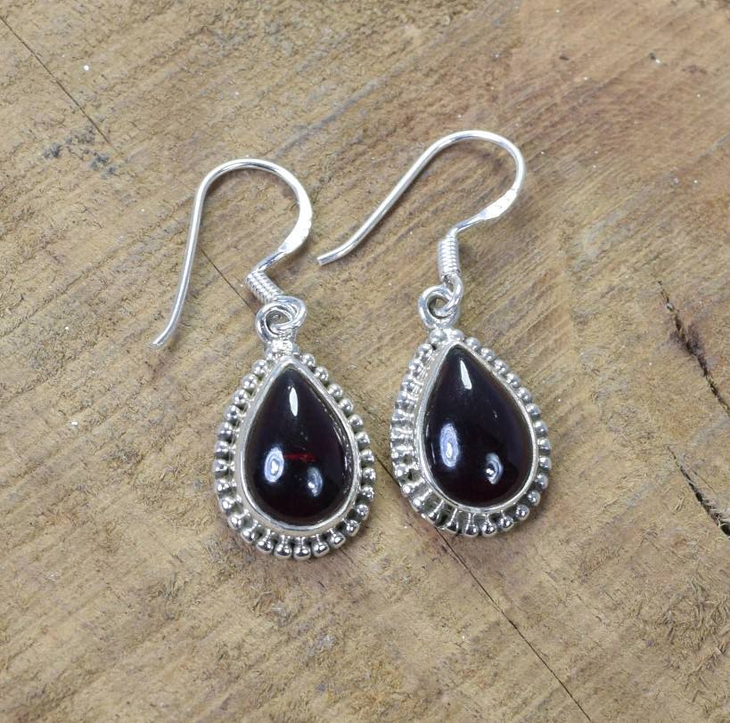 Natural Garnet Gemstone Silver Earrings