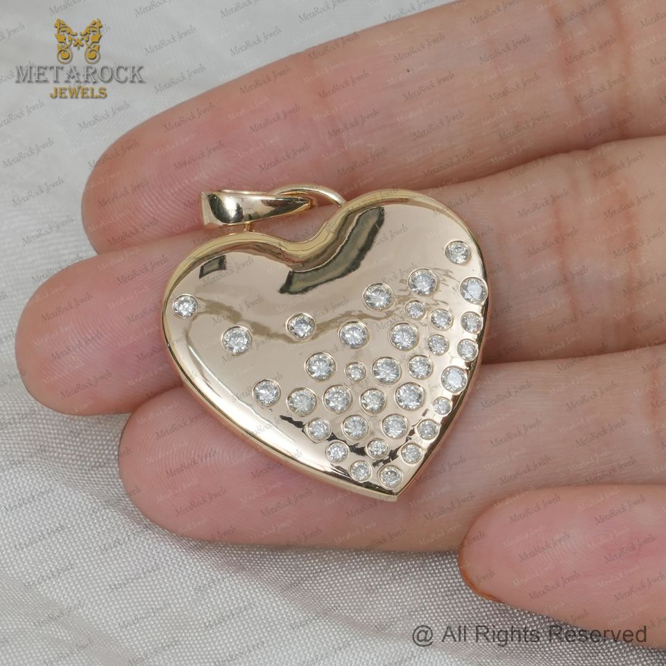 Natural Diamond 14k Yellow Gold Heart Charm Handmade Pendant Unisex Fine Jewelry Wholesale, Pendant For Birthday Gift Necklace