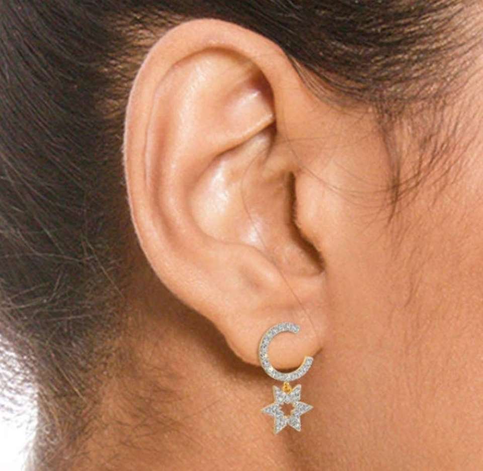 Natural Diamond Earrings Moon and Star Huggie Earrings 14k Gold Diamond Dangle Earrings Celestial Jewelry Perfect Gift for Her