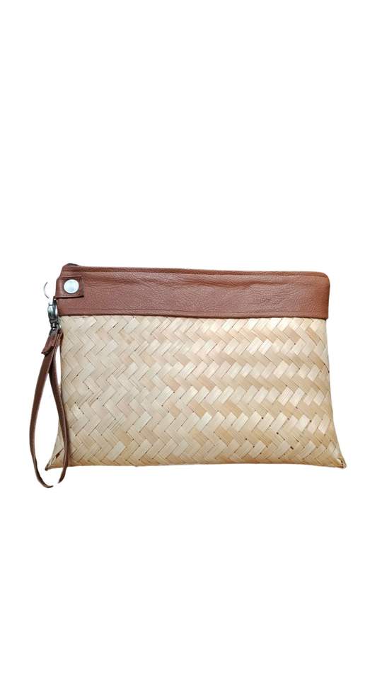 Natural Eco-Friendly Bamboo Handbag with Two Straps Zipper Closure Fashion Accessory