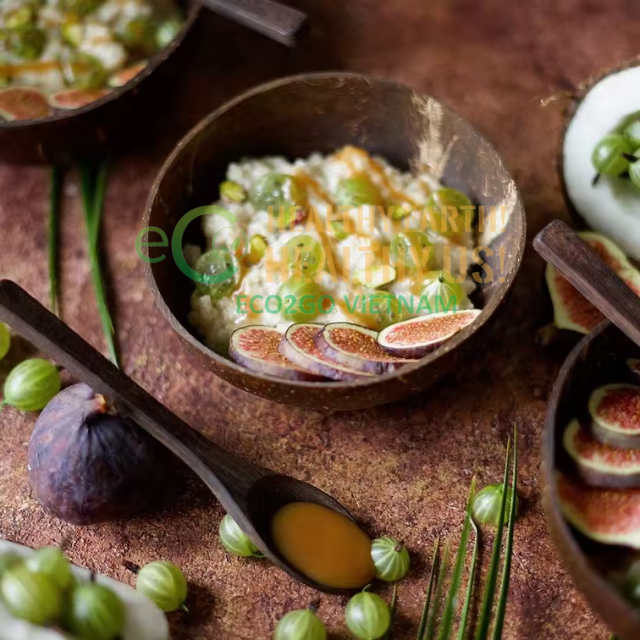Natural Eco Friendly Handcrafted Custom logo Smoothie 500ml Natural Coconut Shell Ice Cream Bowl From Eco2go Vietnam