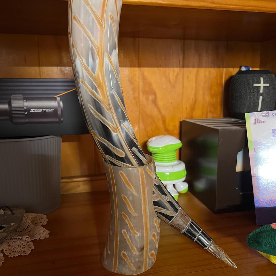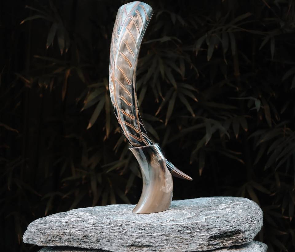 Natural Eco-Friendly Viking Drinking Horn with Hand Engraved Carved Design Feng Shui Animal Stand High Quality