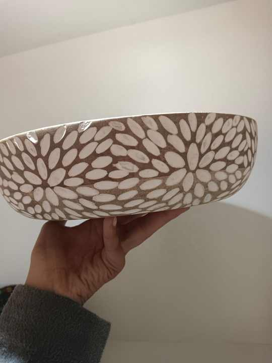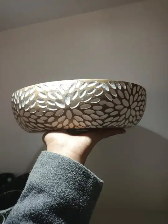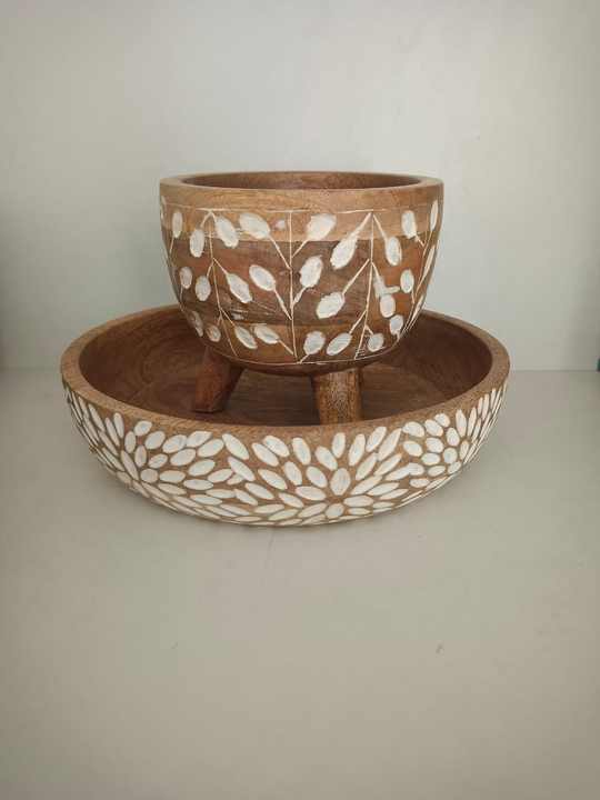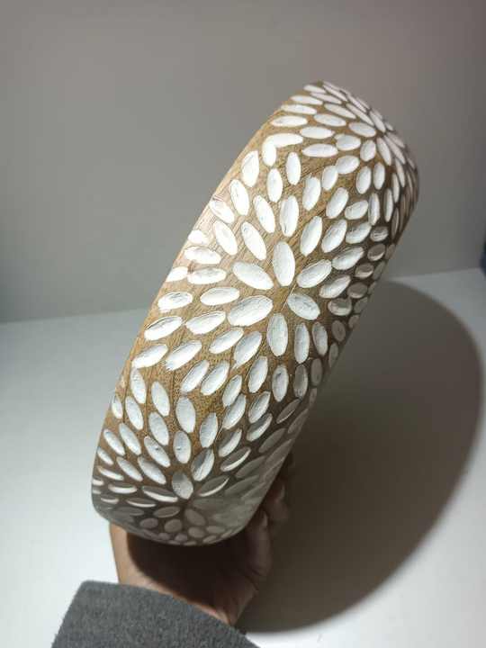 Handcrafted White Bone Inlay Floral Wooden Bowl