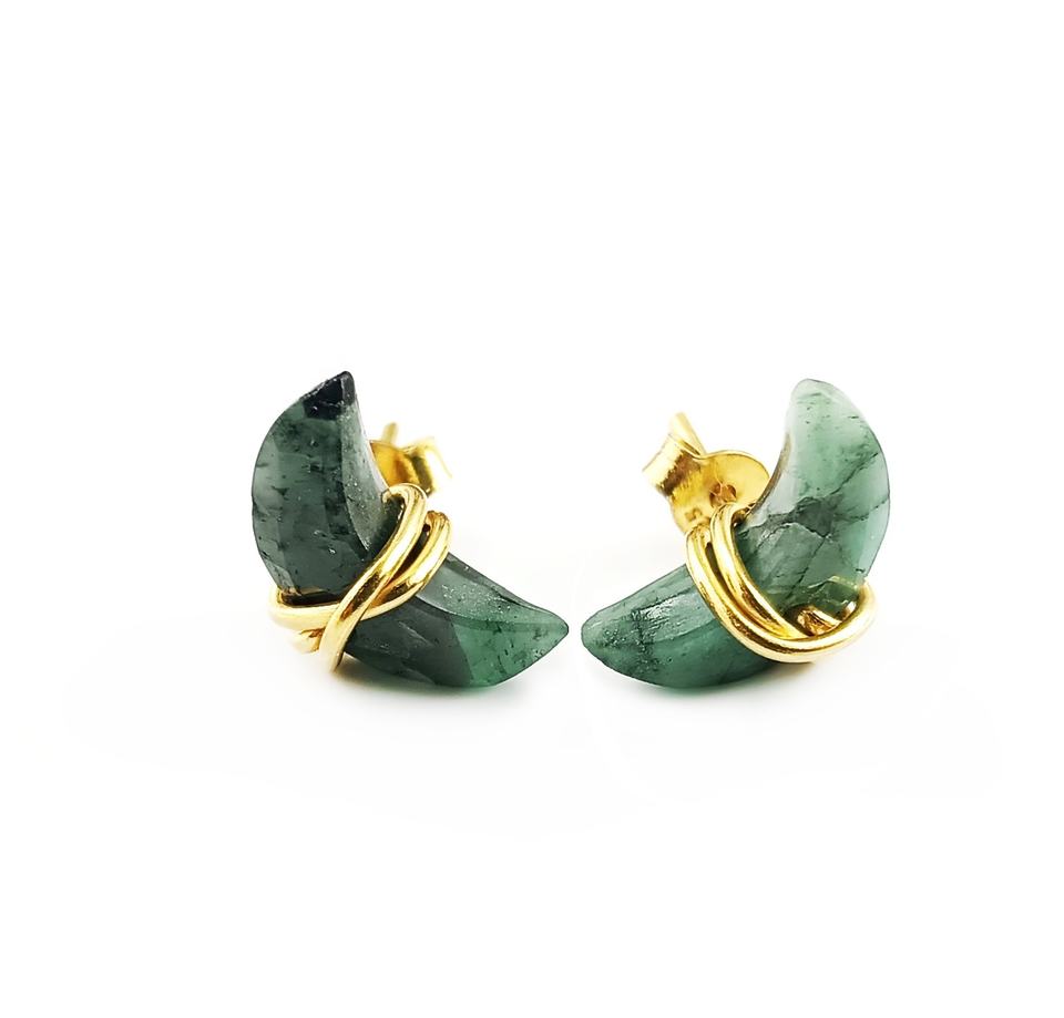 Natural Emerald Crescent Moon Stud Earring Gemstone Earring Sterling Silver Wire Wrapped Stud Earring for Love
