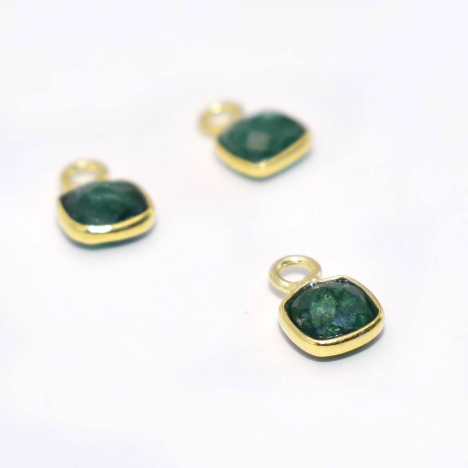 Natural Emerald Cushion Shape Pendant Bezel Set Single Bail Tiny Pendant Faceted Gemstone Charm For Women Jewelry Gift Women