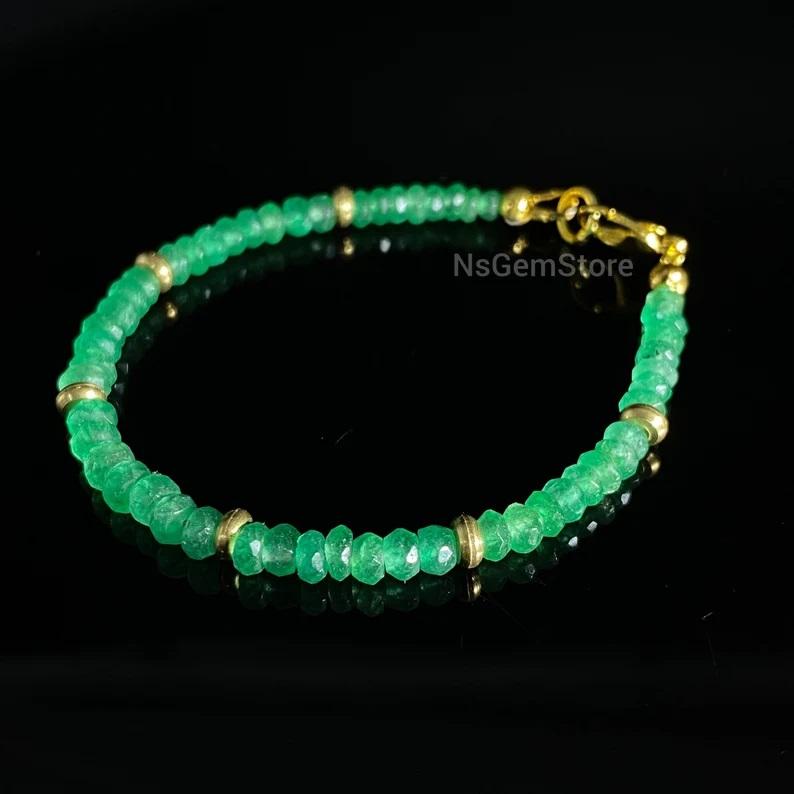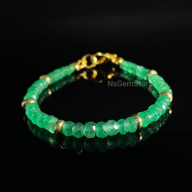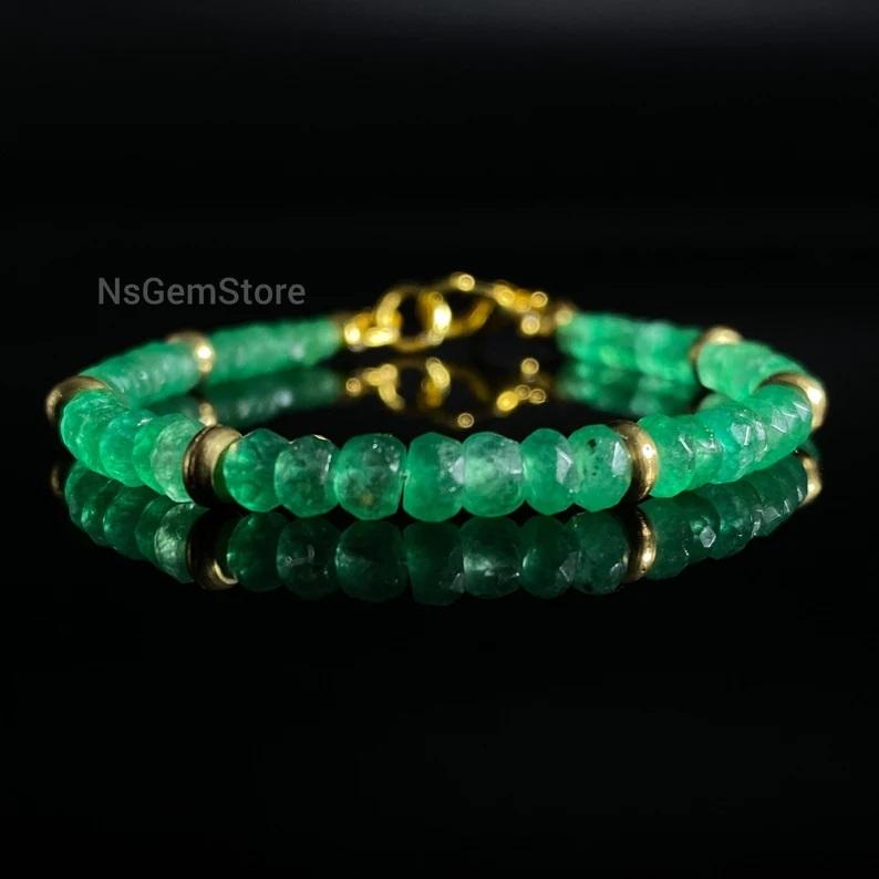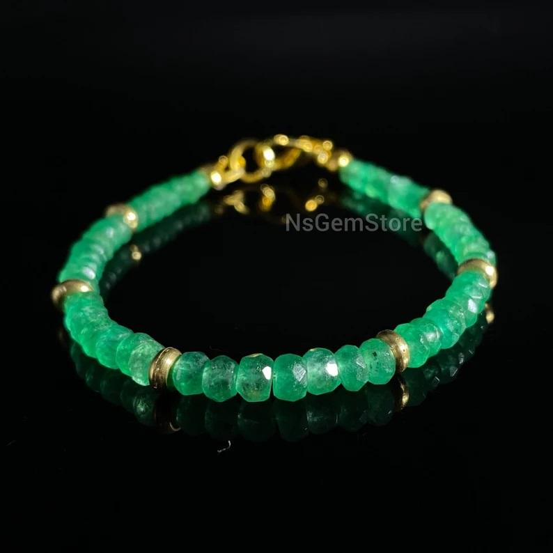 Natural Emerald Faceted Beads Classic Women's Delicate Green Gemstone Beaded Bracelet Jewelry Making Gift