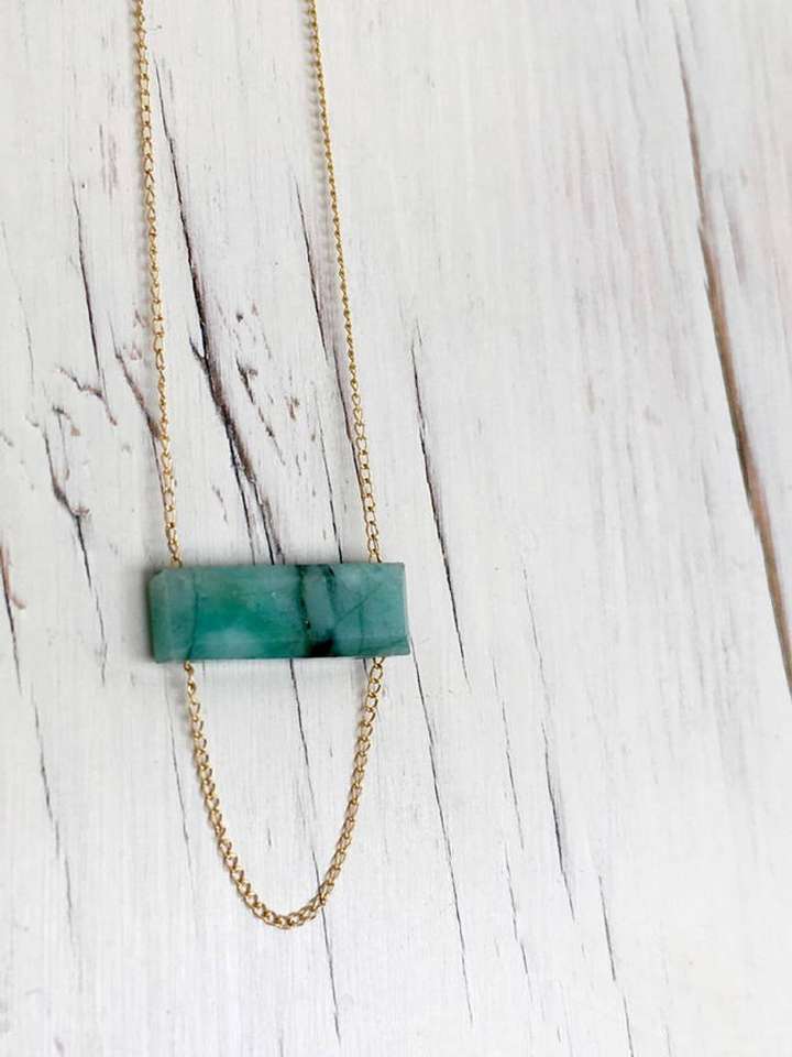 Natural Emerald Faceted Rectangle Shape Gemstone Charm Pendant Necklace 92.5 Sterling Silver 18"Long May Birthstone