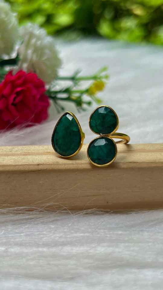 Natural Emerald Ring Handmade Adjustable Statement Gemstone Wedding Women Ring 925 Sterling Silver 14K Gold Gift