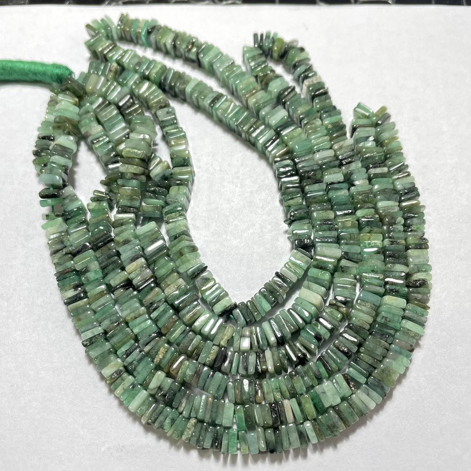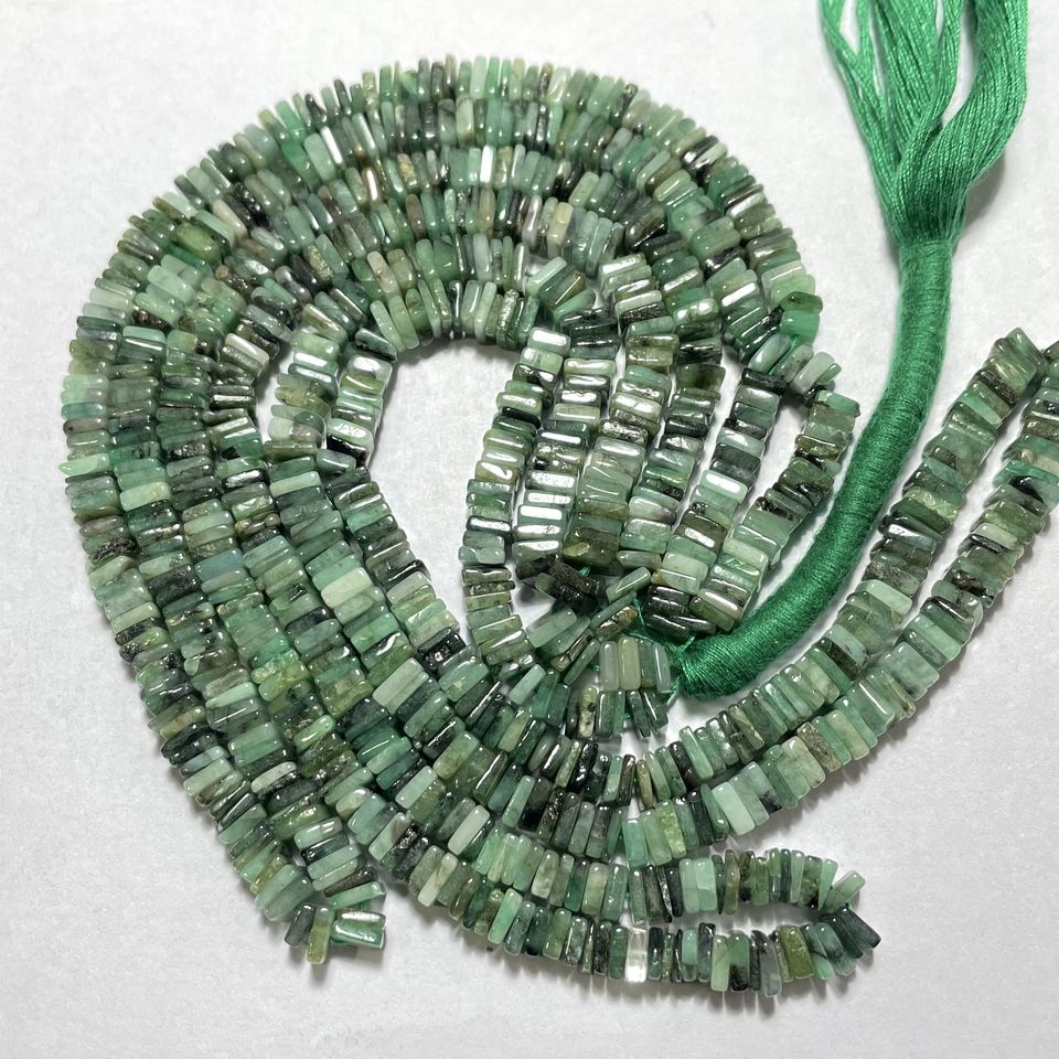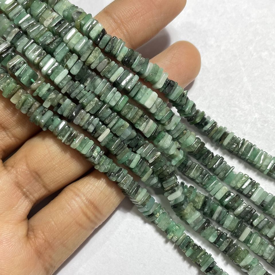 Natural Emerald Square Heishi Beads, Natural Gemstone Flat Square Chips, Center Drilled